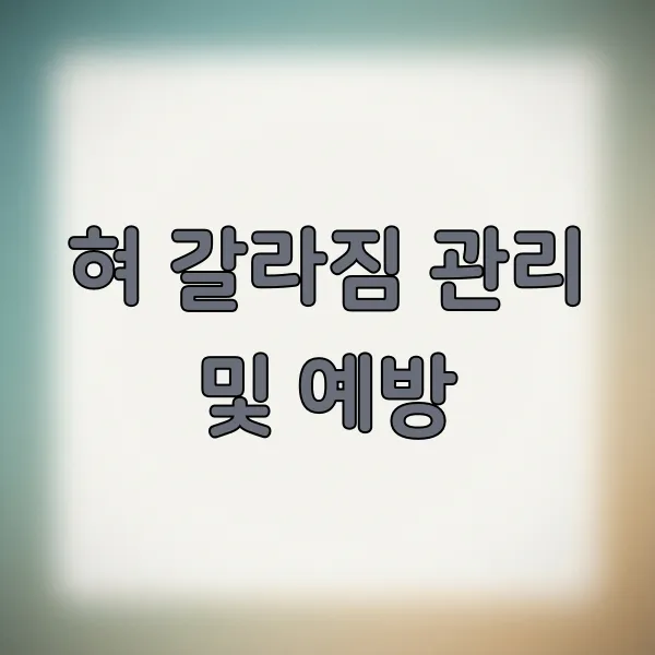 균형 잡힌 식단 을 유지하고, 스트레스 관리 를 병행하는 것도 혀 갈라짐 예방에 중요합니다. 만약 혀 갈라짐이 심하거나 오래 지속된다면, 반드시 치과나 이비인후과 전문의와 상담하여 정확한 원인을 파악하고 적절한 치료를 받으시기 바랍니다.